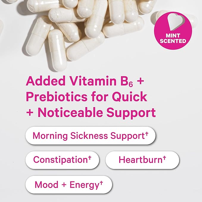 Pink Stork Prenatal Probiotics for Women - 50 Billion CFUs, Vitamin B6, Prebiotics, Morning Sickness, Gut Microbiome, Immune Support, Pregnancy Must Haves, Mint Essence - 30 Capsules