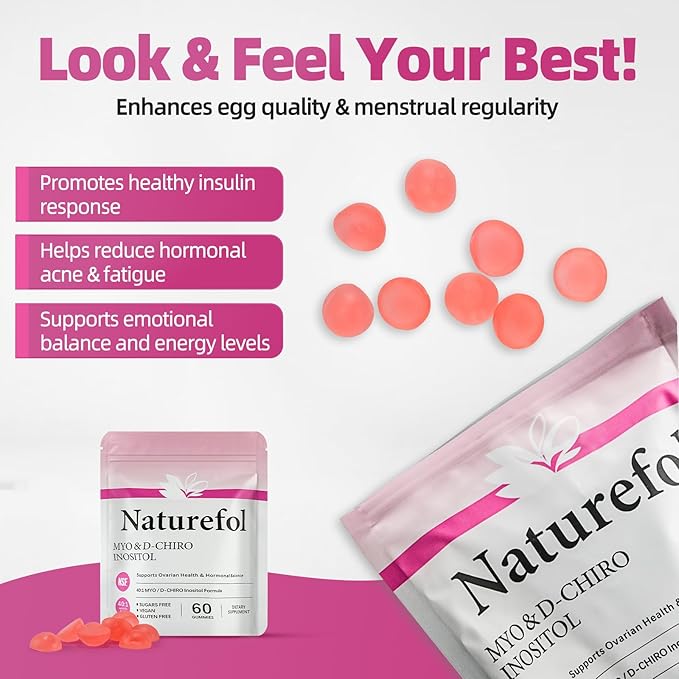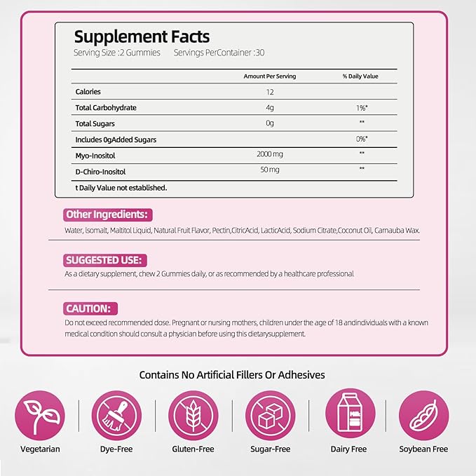 Myo & D-Chiro Inositol Gummies l Ideal 40:1 Gold Ratio| Female Hormone Balance and Ovarian Health Support| NSF |Non-GMO, Gluten-Free, Vegan, Sugar-Free| 30-Day Supply