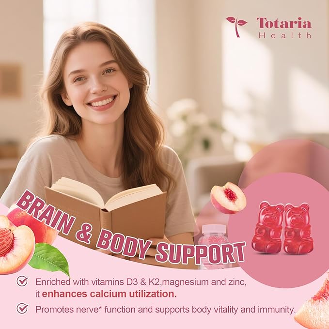 - Brain & Body Support – Calcium 1200 mg with Vitamin D3 and K2,Magnesium,Zinc to enhance calcium utilization, promote nerve function and support body vitality and immunity. Meeting your daily calcium needs is as simple as taking 2 gummies a day to enhance your overall health!
