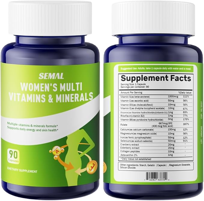 SEMAL Daily Multivitamin & Multimineral Supplement for Women (90 Capsules)