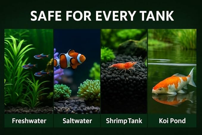 - SAFE FOR FISH, TURTLES & PLANTS : 100% natural activated charcoal—no additives or chemicals. Works in both freshwater and saltwater tanks.