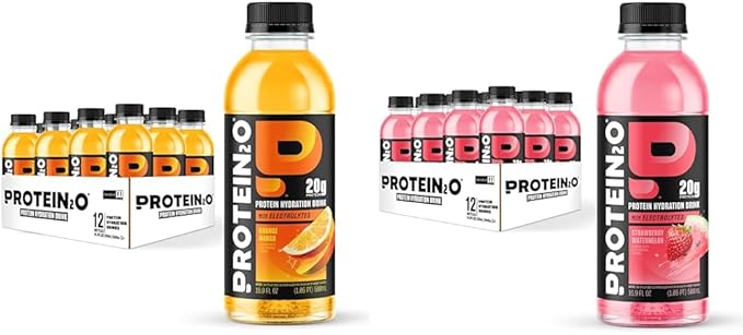 Bundle of Protein2o 20g Whey Protein Isolate Hydration Drink, Orange Mango, 16.9 oz (12 Count) + Protein2o 20g Whey Protein Isolate Hydration Drink, Strawberry Watermelon, 16.9 oz (12 Count)