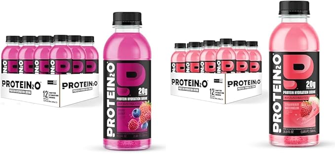 Bundle of Protein2o 20g Whey Protein Isolate Hydration Drink, Mixed Berry, 16.9 oz (12 Count) + Protein2o 20g Whey Protein Isolate Hydration Drink, Strawberry Watermelon, 16.9 oz (12 Count)