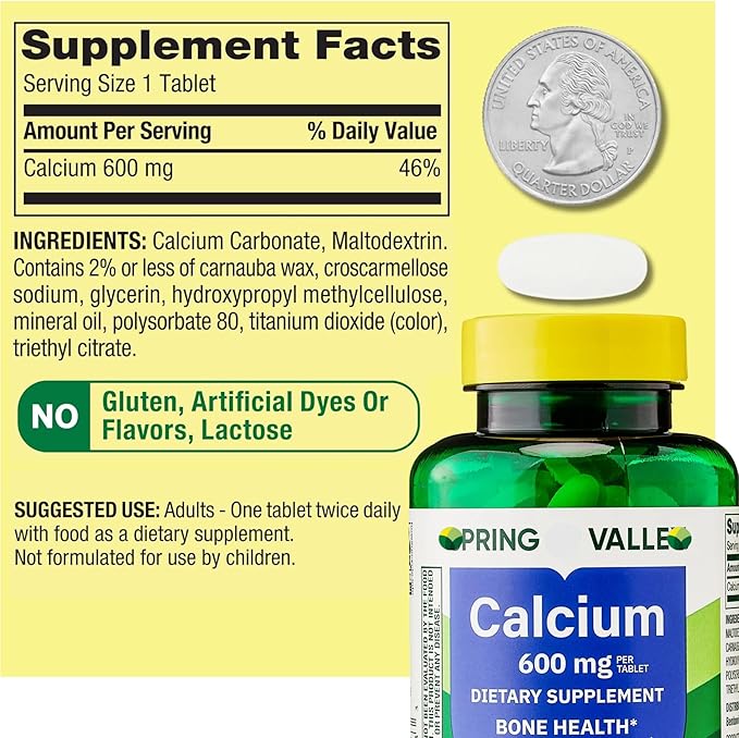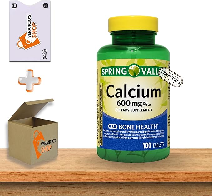 Calcium 600 mg Tablets • Bone & Muscle Health • Supports Strong Bones • Dietary Supplement • 100 Count by Spring Valley + Vena’s Sticker (Pack of 1)
