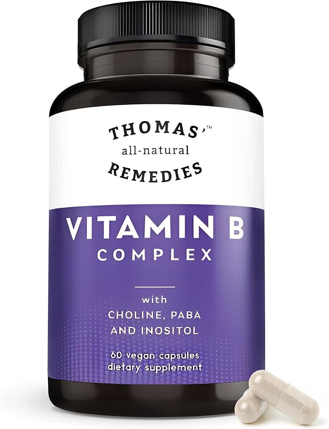Thomas' all-natural Remedies Vitamin B Complex with Choline, PABA & Inositol, Supports Energy Metabolism, Clarity & Nerve Support, Hair Skin Nails Vitamins, Made in USA, 60 Vegan Capsules