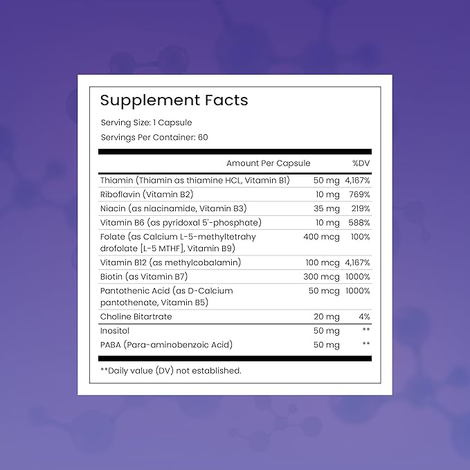 - Pure, Clean & Effective: Our non-GMO, vegan-friendly capsules are gluten-free and made without fillers or artificial additives. Each ingredient is carefully chosen for purity and maximum effectiveness, making this an ideal Vit B complex for anyone seeking clean nutrition.