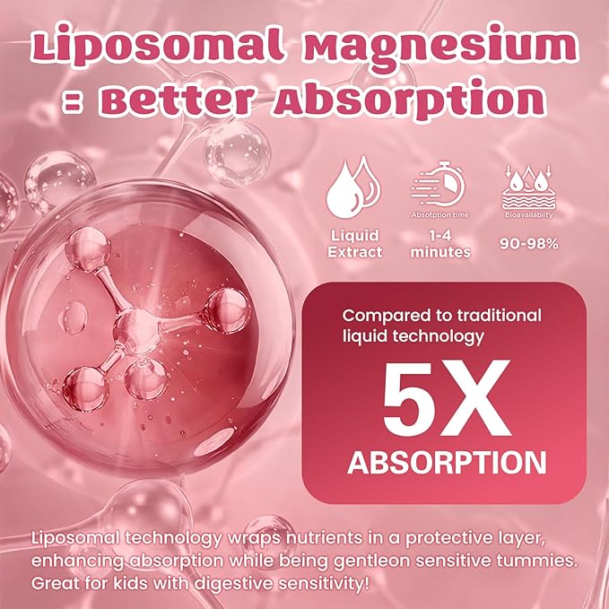 - Liposomal Magnesium for Better Calm & Absorption: Our magnesium glycinate for kids gummies use advanced liposomal encapsulation to shield magnesium through digestion and deliver up to 5x better absorption than regular forms. This means faster, more effective calming and sleep support. The innovative dual-layer gummy design adds fun; it’s not only more bioavailable but also more tasty for kids—no pills, no hassle