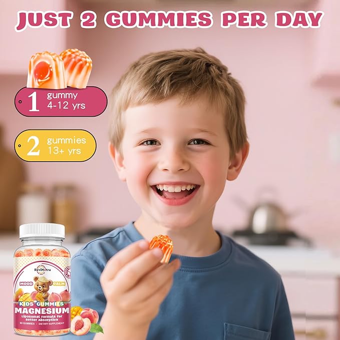- NOURISHING FORMULA FOR HOLISTIC WELLNESS: Our liposomal kids magnesium gummies deliver a potent blend of essential vitamins and minerals, including Omega-3 for brain and nerve support, L-Theanine to reduce stress, and Vitamins D3, K2, and B6 to enhance absorption. This ensures your child receives comprehensive cognitive and developmental support