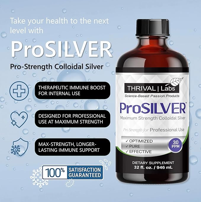 ProSILVER Black Label Pro-Strength Colloidal Silver for Immune Support, 30 PPM Maximum Strength for Professional Use, Dark Glass Bottle - Thrival Labs (16oz)