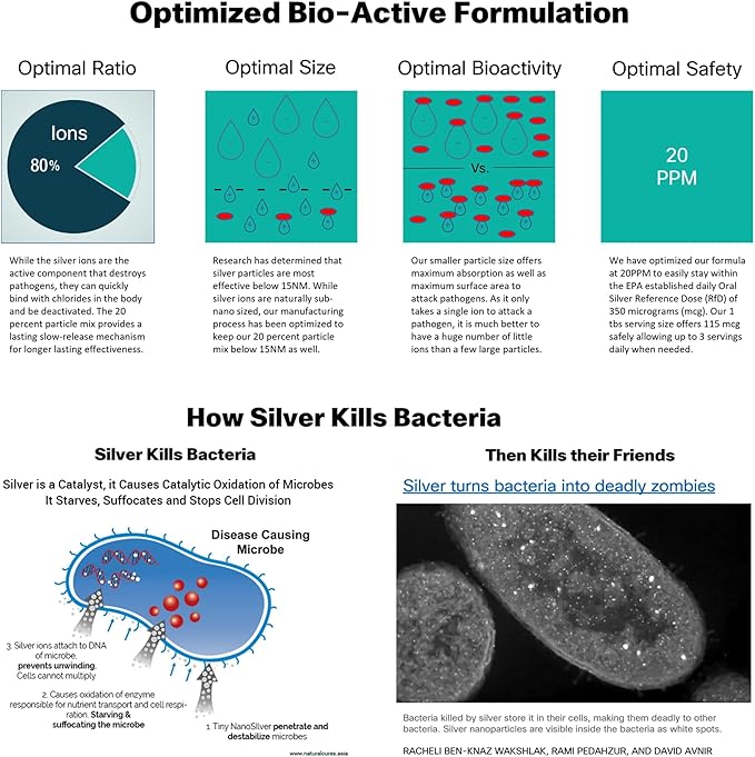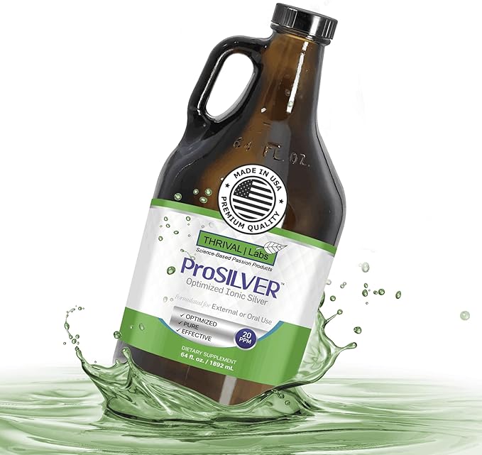Ionic Colloidal Silver Liquid 20 PPM Bio Active for Immune Support Glass Bottle 64oz 384 Servings Organic Supplement