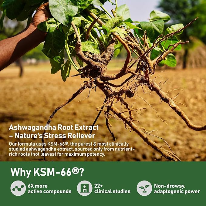 - Mood & Energy Support - Our formula features clinically studied KSM-66 Ashwagandha (300mg, 5% withanolides) and L-Theanine (200mg) to help promote relaxation, support a calm mood, and maintain healthy cortisol levels—without drowsiness