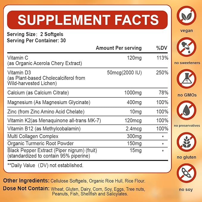 - QUALITY GUARANTEE: Our complex calcium magnesium zinc softgels are gluten free, GMO-free, dairy free and contain no artificial flavors or preservatives. This calcium with magnesium zinc vitamin D3 supplement is suitable for vegans.