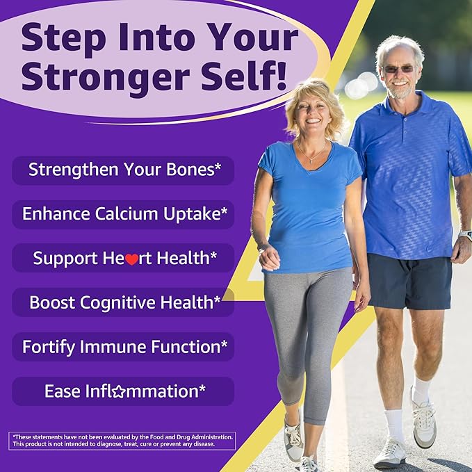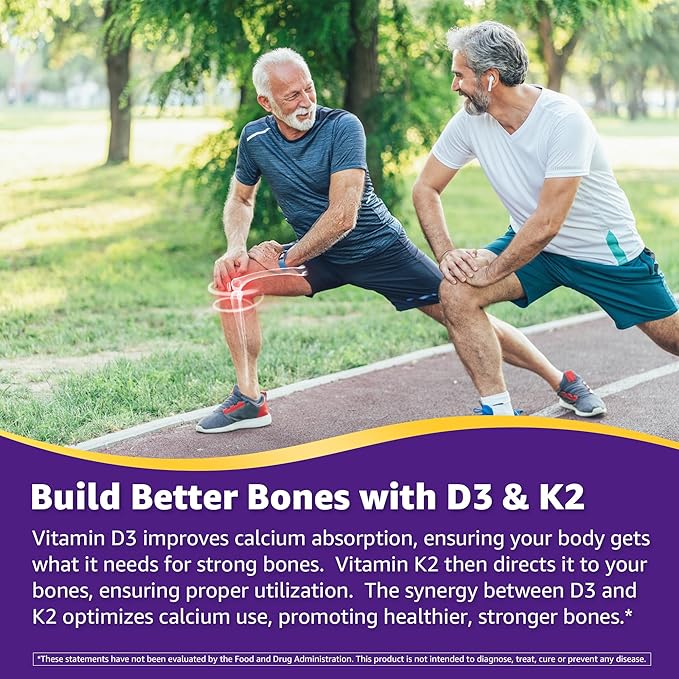 - D3 + K2: The Better Duo for Bone Health – Don’t let weak bones slow you down. Vitamin D3 and K2 are both essential for bone health, but together, they form an unbeatable team. Vitamin D3 enhances calcium absorption in the intestines, while Vitamin K2 ensures that calcium is directed straight to your bones. They work synergistically to promote strong, healthy bones and optimal calcium utilization. Now that’s a winning combination!