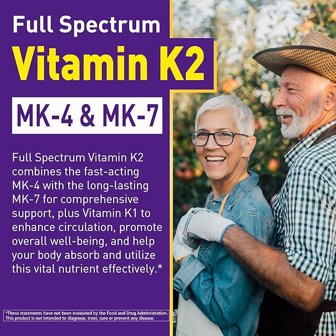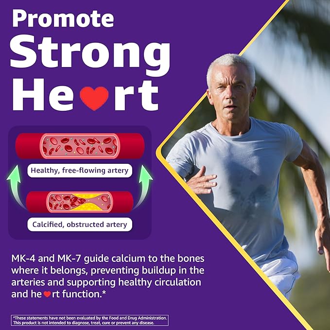 - He❤rt Health & Antioxidant Support - Concerned about he❤rt problems or oxidative effects? MK-7, a form of Vitamin K2 with excellent bioavailability, plays a vital role in regulating calcium and controlling its accumulation in the art-ḙriḙs, helping to maintain healthy circulation. Vitamin K2 also supports antioxidant function by reducing infl-ḁmmḁtion and protecting cells from oxidative effects, contributing to long-term overall health.