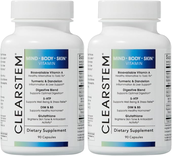 CLEARSTEM - MINDBODYSKIN Hormonal Acne Supplement (5-HTP) - Natural DIM Supplement - Skin Care Vitamins - Hormone Balance, Antioxidants - Gluten Free, Cruelty Free - 60 Servings, 180 Capsules