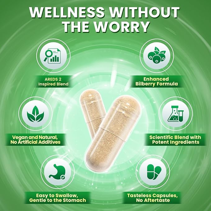 - Gentle & Safe, No Additives: This vegan, GMP-certified AREDS 2 eye vitamin is gentle and safe—made without artificial additives, preservatives, gluten, soy, or dairy. Just two capsules a day provide comprehensive support for vision wellness, helping you build a strong foundation for long-term eye health