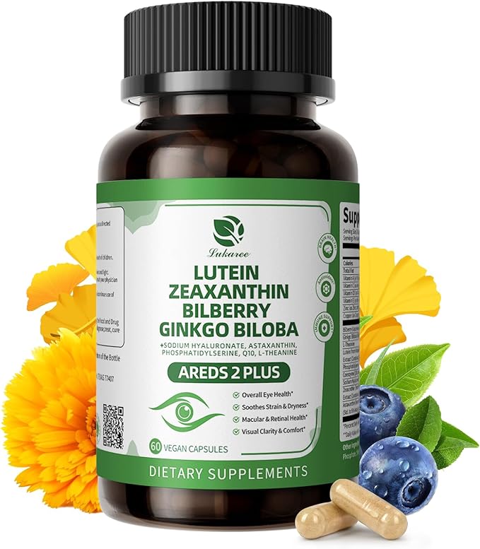 - Advanced AREDS 2 Formula: Inspired by the AREDS 2 formula, Lukaree lutein and zeaxanthin supplements are further enhanced with powerful antioxidants such as bilberry and astaxanthin. The formula also includes sodium hyaluronate to help soothe dry eyes, along with brain-supporting ingredients like ginkgo biloba, phosphatidylserine, L-theanine, and CoQ10, delivering not only advanced eye health support but also holistic brain support