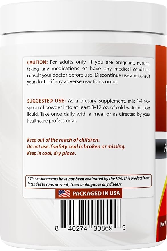 - Packaged in the USA – Produced in a GMP-compliant, FDA-registered facility with third-party testing to ensure quality and consistency.