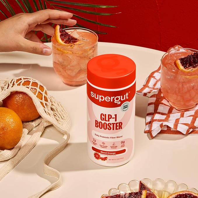 Supergut Gut Healthy Flavored GLP-1 Booster, Blood Orange - High Fiber GLP-1 Supplement Powder for Women & Men - Sugar-Free Drink Mix for Gut Health & Digestive Support (18 Servings)