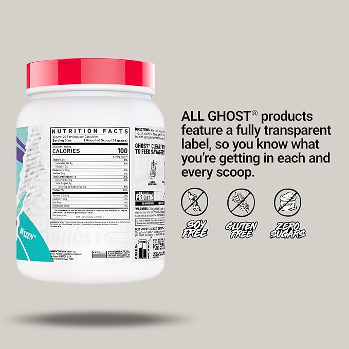- Whey More Refreshing: GHOST Clear Whey has a light, refreshing Blue Raspberry taste for juicy gains that deliver as much protein as the OG GHOST WHEY. Approximately 20 servings per container.