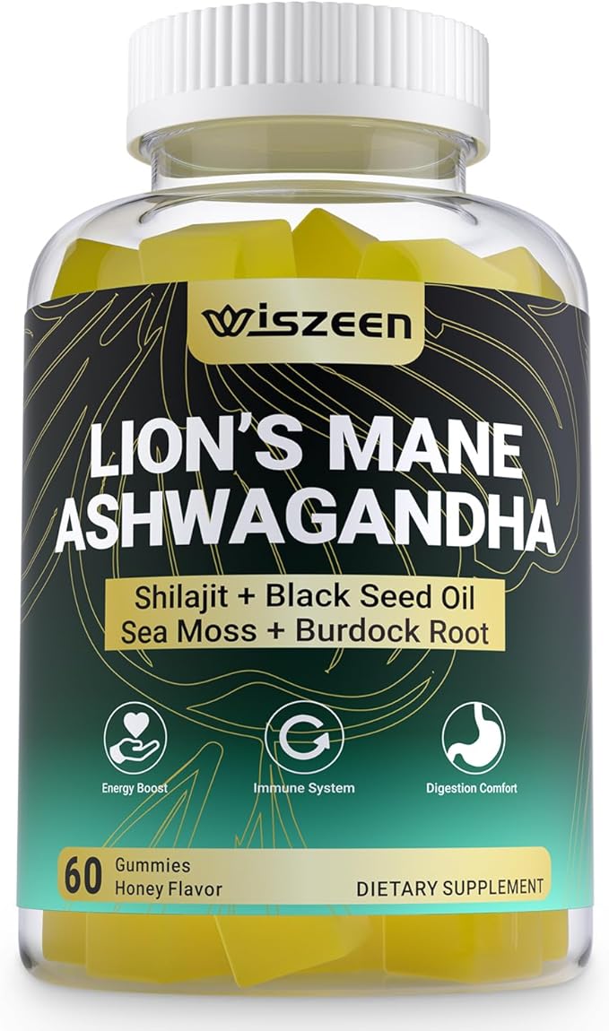 Ashwagandha & Lions Mane Gummies, Ashwagandha with Shilajit, Sea Moss, Black Seed Oil for Men & Women