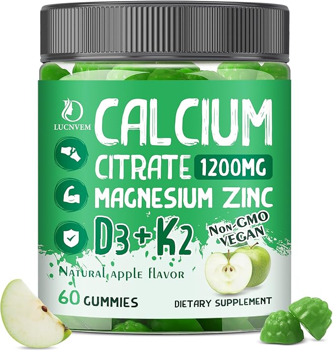 - Delicious Calcium "Snacks": It is a torture to eat hard-to-swallow capsules and powders with a frown every day! LUCNVEM calcium citrate gummies is not sticky, not bitter, and tastes delicious. The apple flavor allows you to complete calcium supplementation in a pleasant way every day. Make daily calcium supplementation beautiful