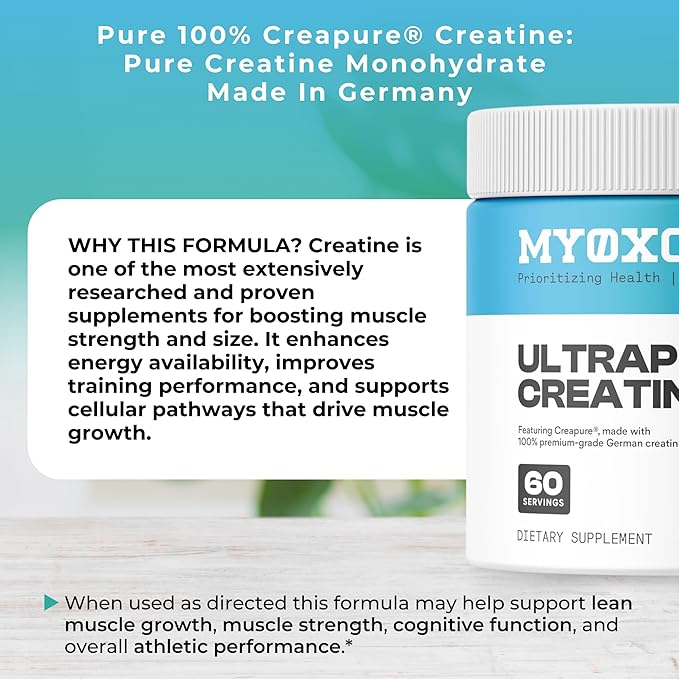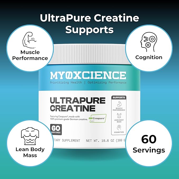 MYOXCIENCE UltraPure Creatine | Featuring Creapure | Supports Muscle Performance, Cognition and Lean Body Mass | 60 Servings