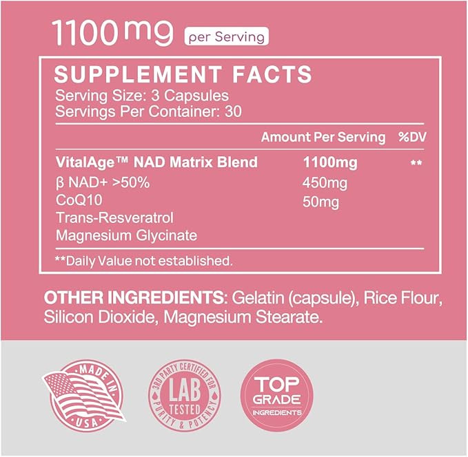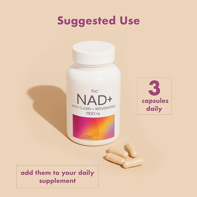 VHC NAD+ Supplement, NMN Alternative Liposomes with CoQ10, Trans-Resveratrol for Women & Men,Support Energy, Anti-Aging,Focus,90 Capsules