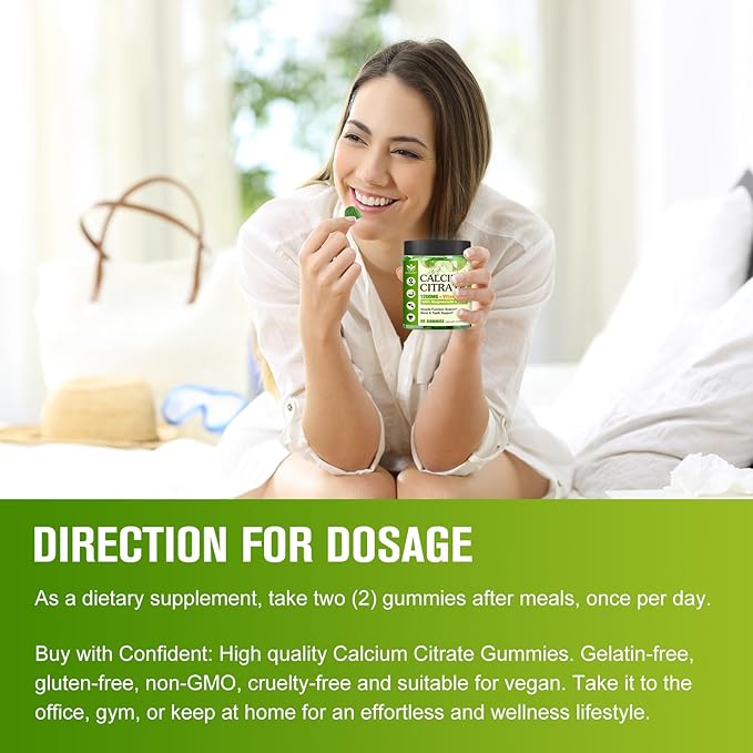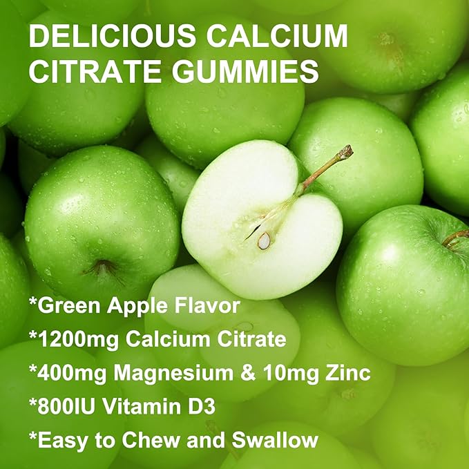 - Delicious & Convenient: Taking pills everyday can be a challenge, you can try to eat gummies. These gummies are delicious apple flavor and fit effortlessly into your day. WOGORGT calcium citrate gummies are suitable for women, men, the elderly and teenagers. Take it to the office, gym, or keep at home for an effortless and wellness lifestyle.
