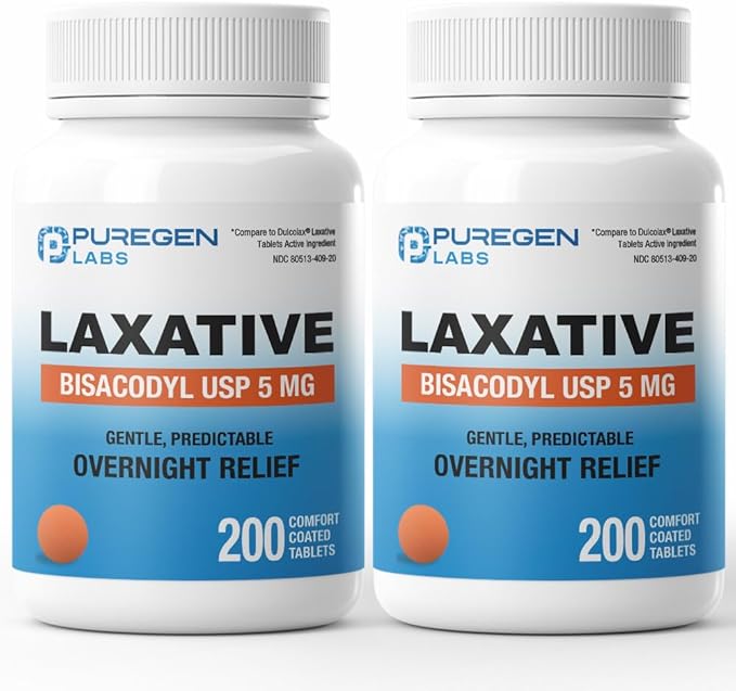 Puregen Labs Bisacodyl 5mg Tablet | Total 400 Count | Stimulant Laxative, Gentle and Fast Overnight Relief for Constipation