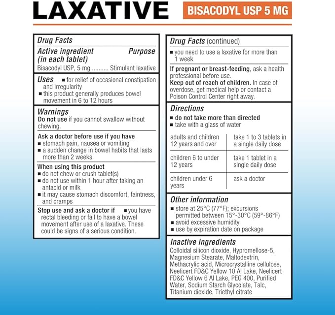 - ✔️ OPTIMAL EFFECT: Our Laxative Bisacodyl 5mg tablets have an effective laxative formula that can help provide gentle relief from occasional constipation.