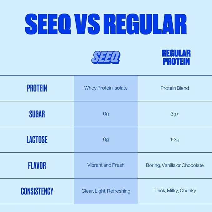 - JOIN THE JUICY SIDE: SEEQ Clear Whey Isolate is not just another protein powder. We’ve taken high-quality whey protein isolate to create a light and refreshing alternative to your typical thick and milky protein shake.