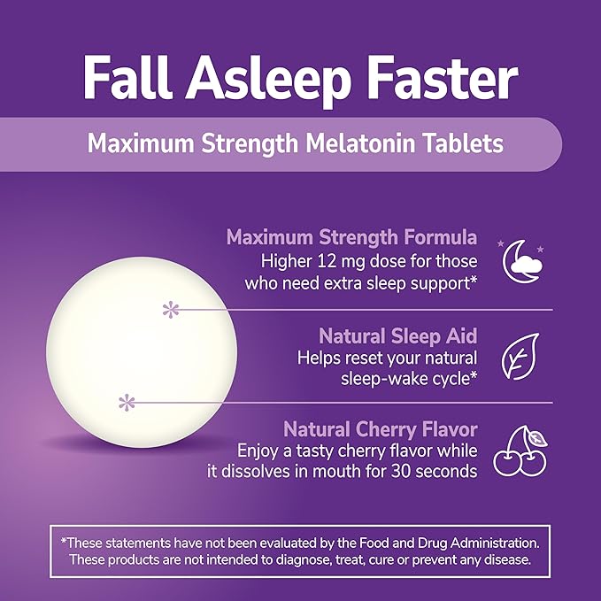 - FAST-DISSOLVING & CHERRY FLAVORED: Dissolves in the mouth in 30 seconds for quick absorption, delivering extra strength melatonin swiftly into your system. Enjoy the burst of cherry flavor, making your nighttime routine both effective and pleasant