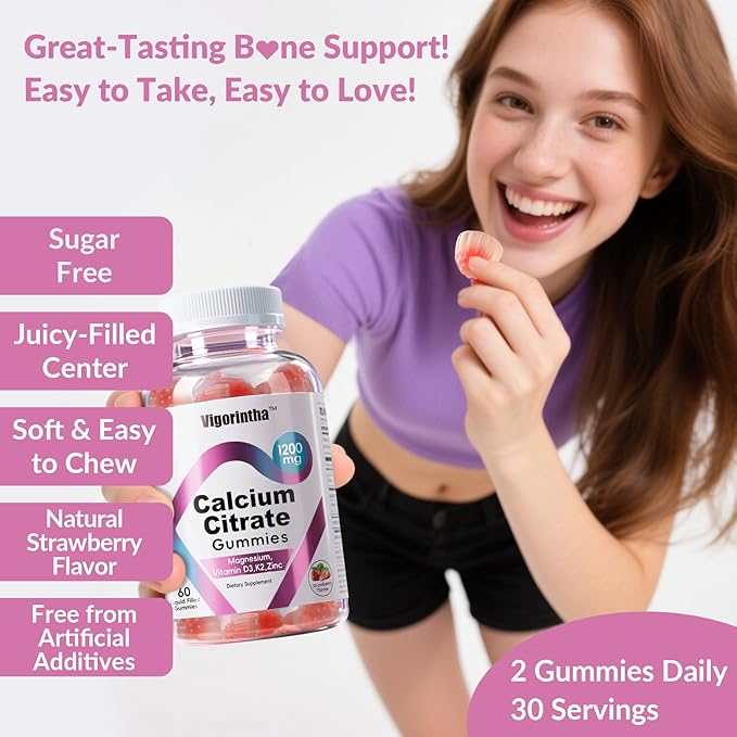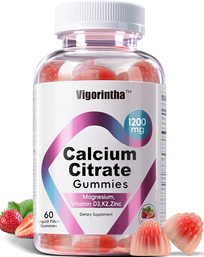 - [High-Absorption Calcium] Each calcium gummy delivers 1200mg of chelated calcium citrate, a highly bioavailable and stomach-friendly form to maximize calcium intake without digestive discomfort. Meet your daily calcium needs with ease and enjoy superior absorption—no more bulky supplements!