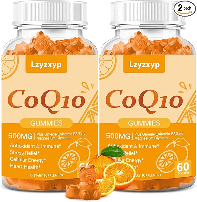 CoQ10 Oranges Gummies 500mg-3X Better Absorption Coenzyme Q10 Supplements - Plus Omega-3, Magnesium, Vitamin B3 & Zinc for Heart Health, Cellular Energy & Antioxidant, Vegan, Non-GMO 120 Ct (2)