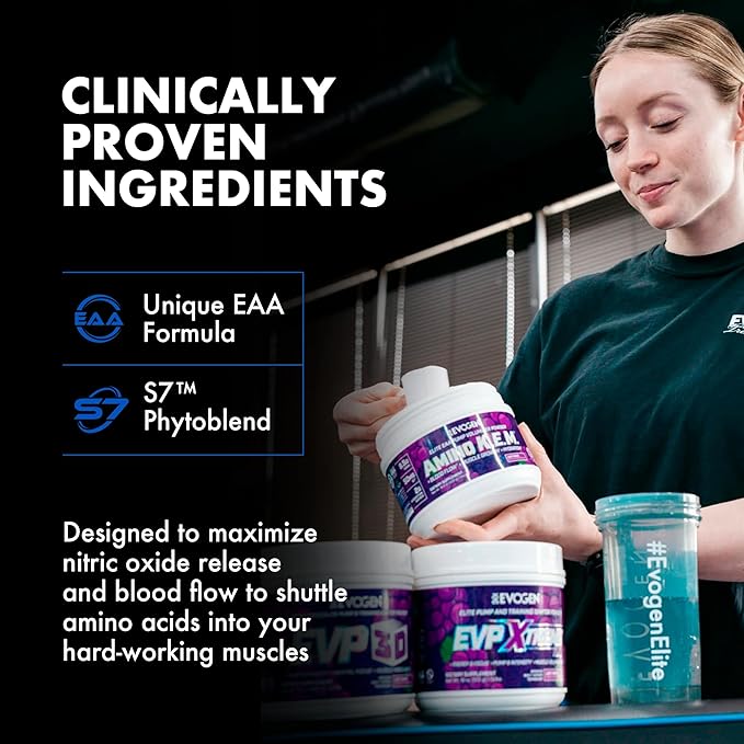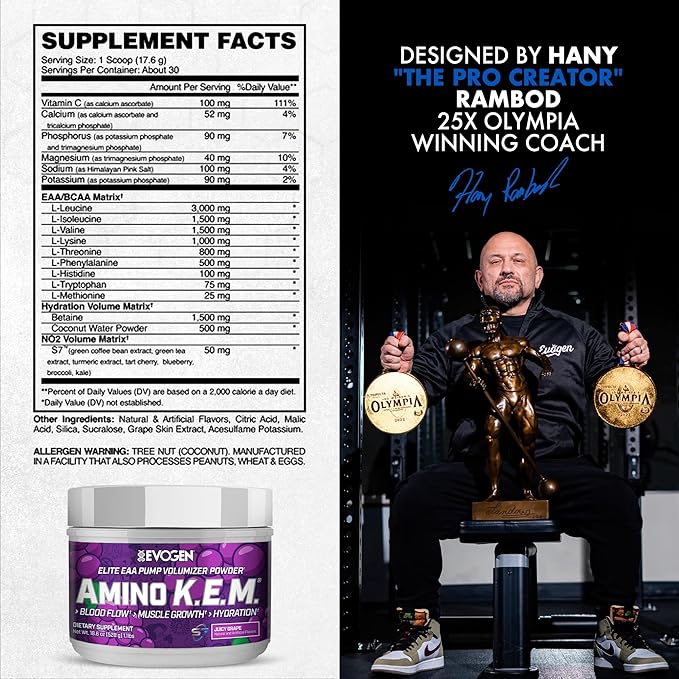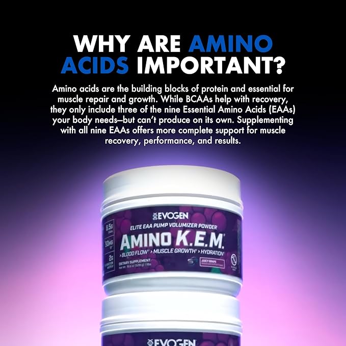 Evogen Amino K.E.M. - EAA & BCAA Powder Pump Volumizer | BCAAs Amino Acids Supplement for Blood Flow, Muscle Growth, & Hydration | Juicy Grape | 30 Servings