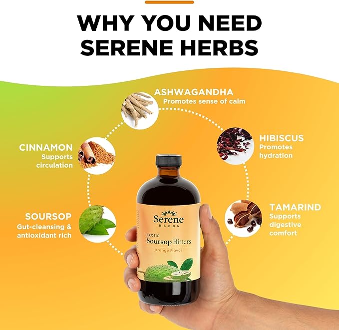 - HERBAL FORMULA FOR DIGESTIVE SUPPORT Serene Herbs Soursop Bitters is made with traditional herbs like soursop leaves, black seed, and moringa, known for their natural role in supporting healthy digestion and gut wellness