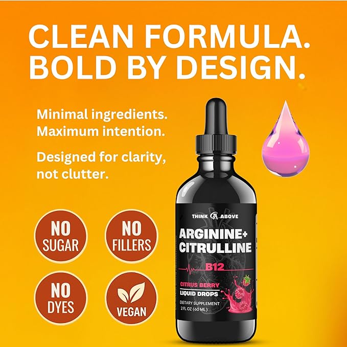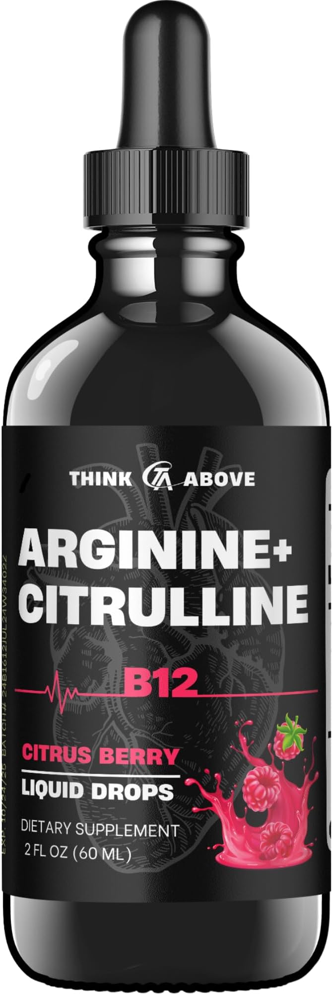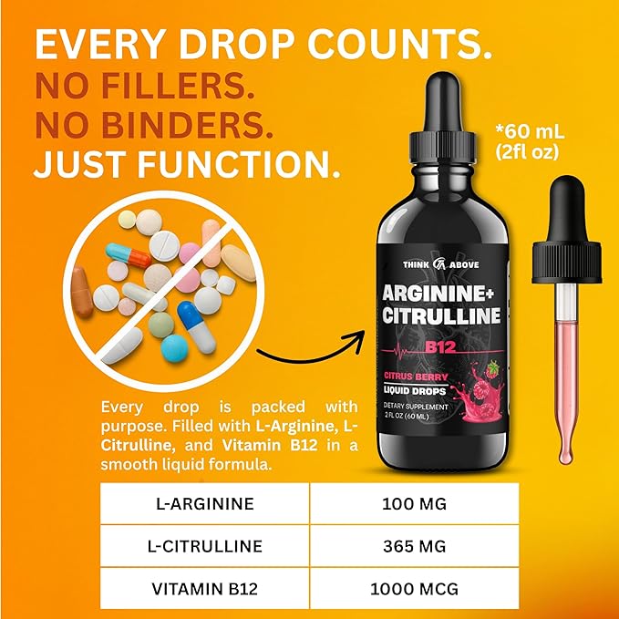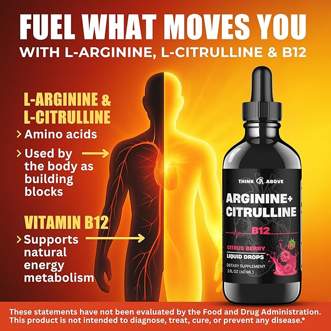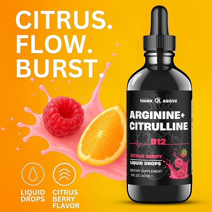 L-Arginine + L-Citrulline Liquid Drops with Vitamin B12 – Citrus Berry Flavor, 2 fl oz (60 ml) - Fast Absorption, Easy-to-Use