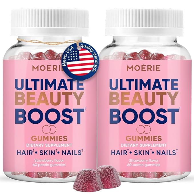 - Wellness That Tastes as Good as It Feels! Upgrade Your Routine With Something You’ll Actually Enjoy — A Sweet Strawberry Biotin Gummies That Makes Beauty Support Fun Again. Packed With High-Potency Biotin, Vitamins C & E, and Clean Ingredients You Can Trust. Moerie Hair Nails and Skin Vitamins for Women and Men – Support Radiant Hair, Glowing Skin, and Strong Nails in the Most Delicious Way.