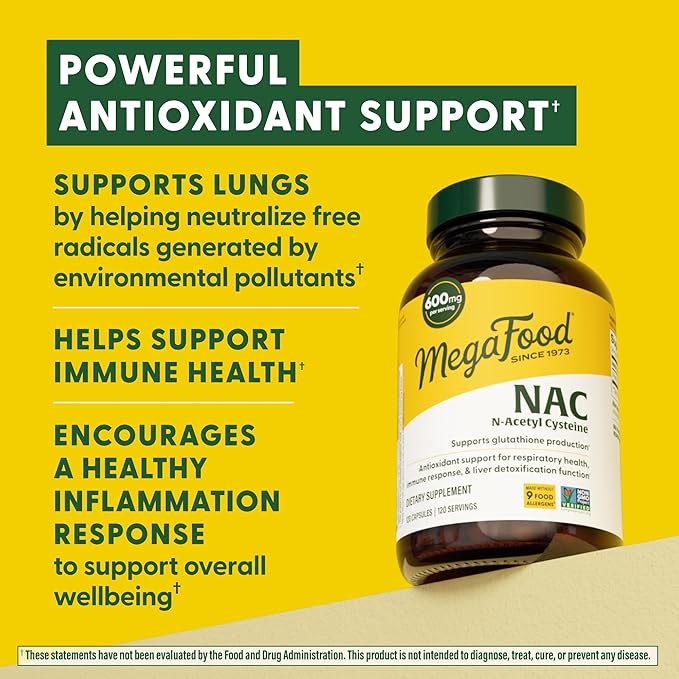 MegaFood NAC Supplement N-Acetyl Cysteine 600mg Per Serving - Promotes Production of Glutathione - Liver Support & Immune Support Supplement - Vegan, Non GMO - 120 Capsules, 120 Servings