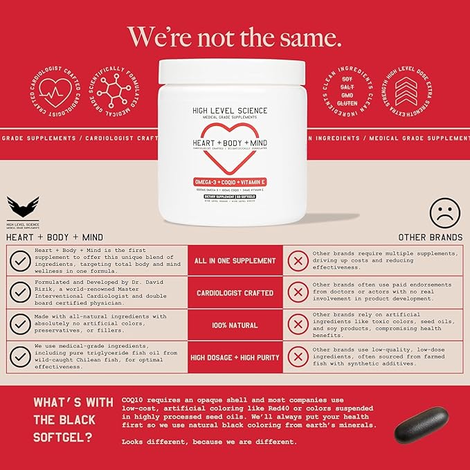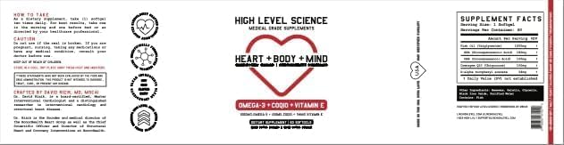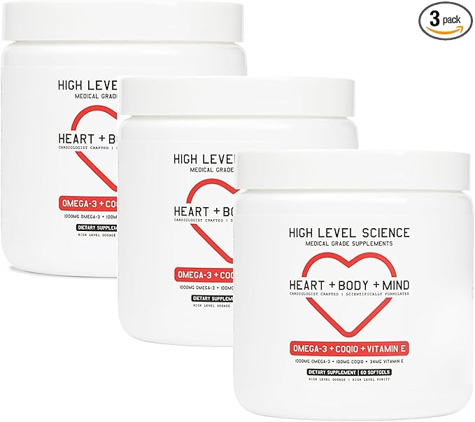 High Level Science CoQ10, Omega-3, Vitamin E, Cardiologist Formulated for Heart + Body + Mind Health, DHA/EPA, Antioxidant for Energy, Superior Bioavailable Fish Oil, Gluten Free, 60 Softgels - 3 Pack