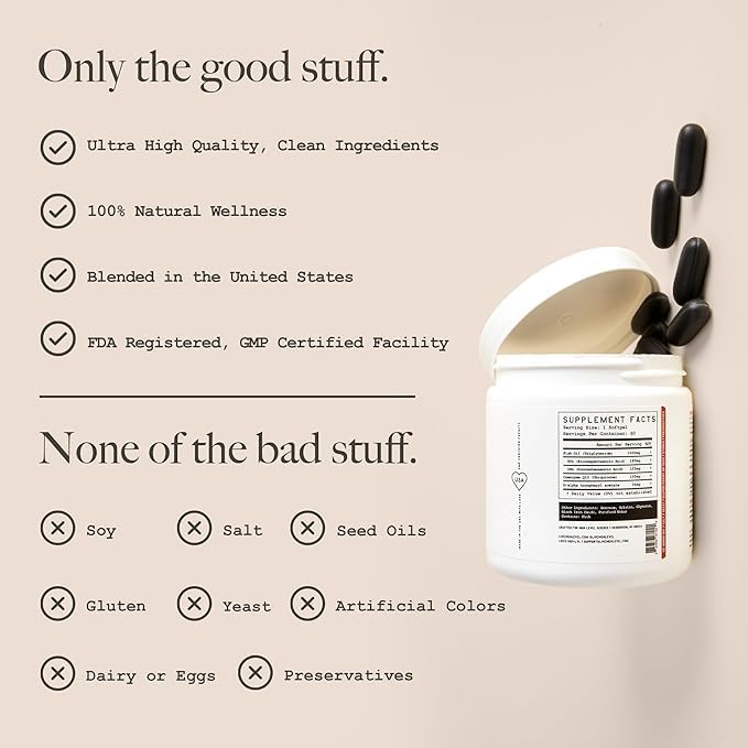 - NATURAL BLACK SOFTGELS: Unique softgels use earth minerals for color, protecting purity without synthetic dyes. Prioritizes quality for omega 3 plus coq10 and vitamin e absorption.