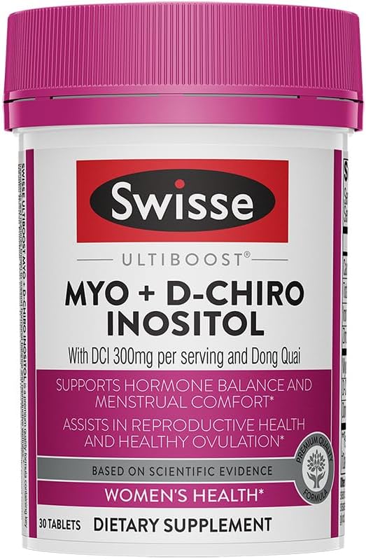 Swisse Ultiboost Myo-Inositol & D-Chiro Inositol Supplement | Hormonal Balance, Ovarian Health & Menstrual Support | 1100mg Myo-Inositol + 300mg DCI with Dong Quai | 30 Tablets