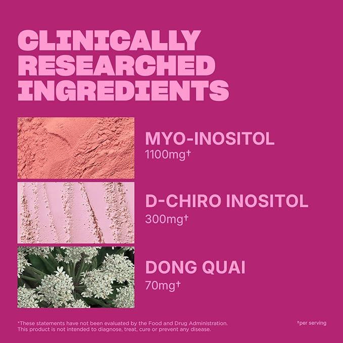 - Promotes Ovarian Health & Hormonal Balance: Clinically studied Myo-Inositol and D-Chiro Inositol combination supports ovarian health, hormonal balance, and healthy reproductive function to help women maintain overall wellness.*