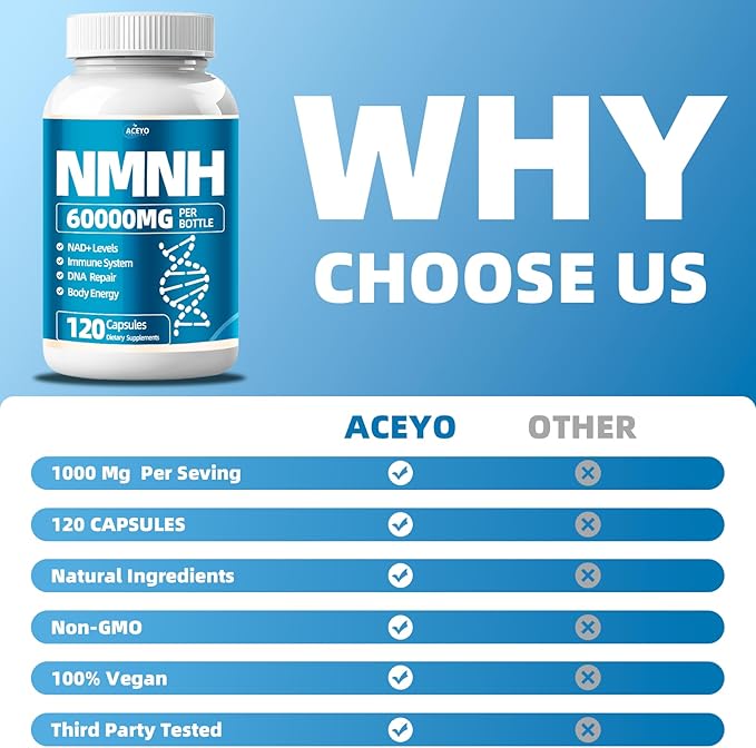 ACEYO NMNH(Dihydronicotinamide Mononucleotide),500mg Per Serving,NAD Supplement to Boost NAD+ Levels for Energy, Immunity, Focus,120 Capsules