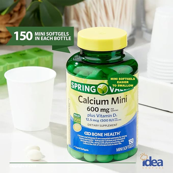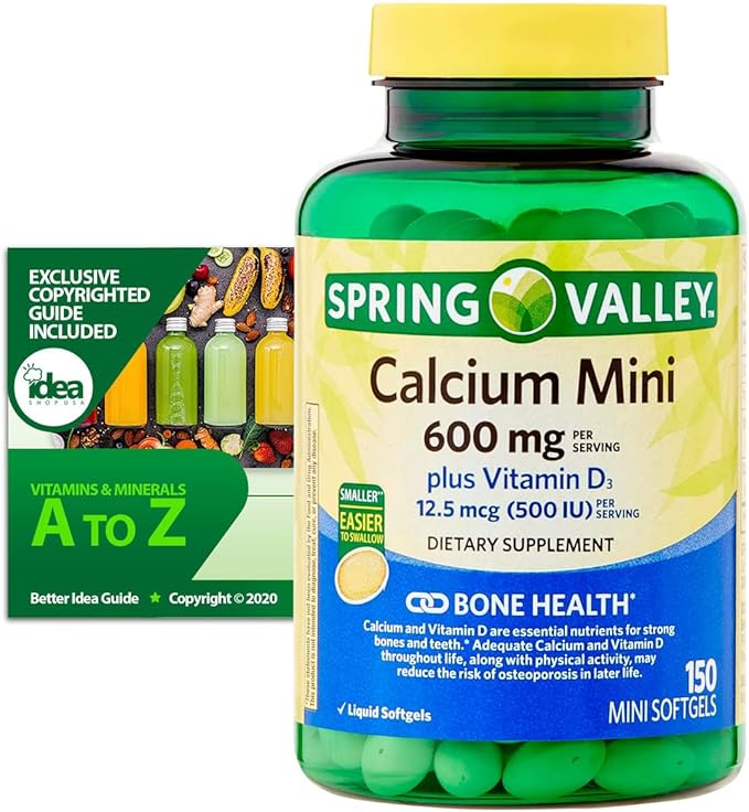 Calcium 600mg with Vitamin D3 Bone & Teeth Support, 150 Mini Softgels – Easy to Swallow, Gluten-Free, Non-GMO – Bundle with Vitamins & Minerals - A to Z - Better Idea Guide