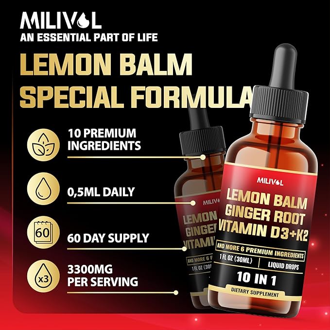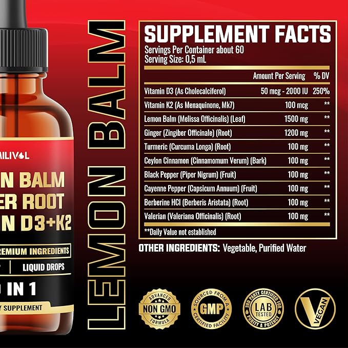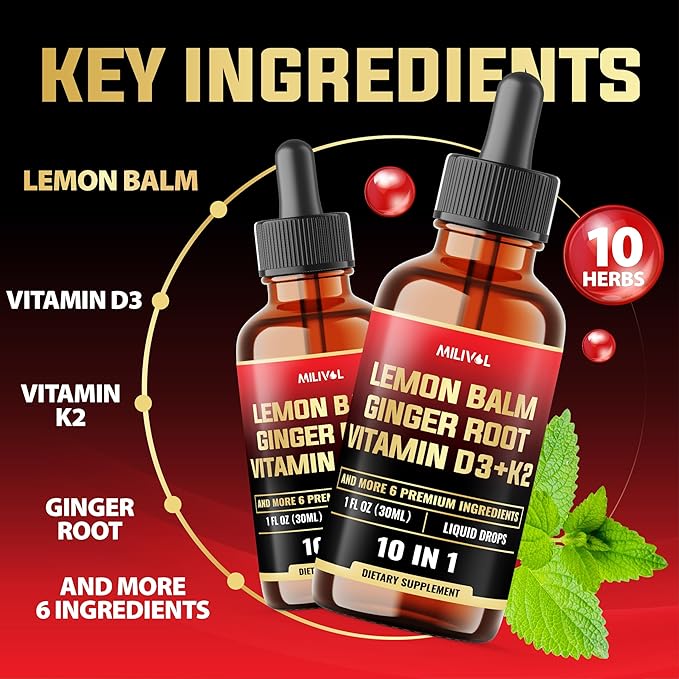 - ✔️ Key Ingredients: 10in1 Lemon Balm Liquid Drops blend includes 10 ingredients with Ginger Root, Turmeric Supplement, Ceylon Cinnamon, Vitamins D3, K2 and more. This formula is designed to support the full body