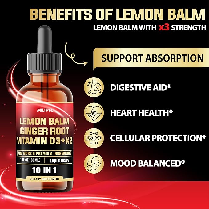 - ✔️ Benefits: 10in1 Lemon Balm Tincture supports healthy digestion, heart function, cellular protection, and balanced mood. This high, fast-absorbing formula combines premium herbal extracts and essential vitamins to support everyday health