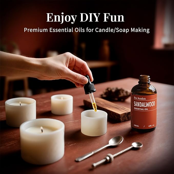 - Multipurpose Benefits - Use SU JUABA Sandalwood Oil for a variety of applications, from aromatherapy to massage blends, soap making, and candle fragrances. Its versatility makes it an essential addition to your home and personal care collection