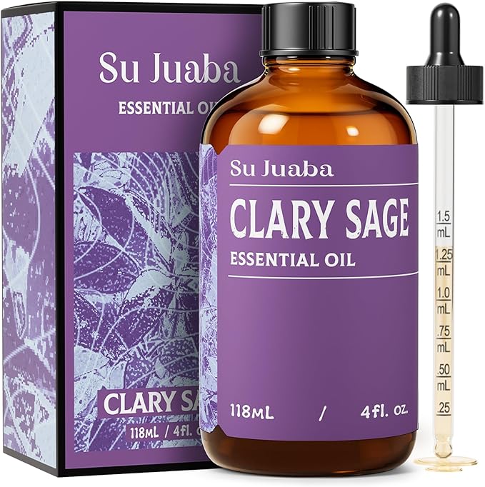 SU JUABA Clary Sage Oil Essential Oil 4 Fl Oz, 100% Pure Natural for Anxiety Relief, Skin, Hair,Diffuser, Aromatherapy -118ml